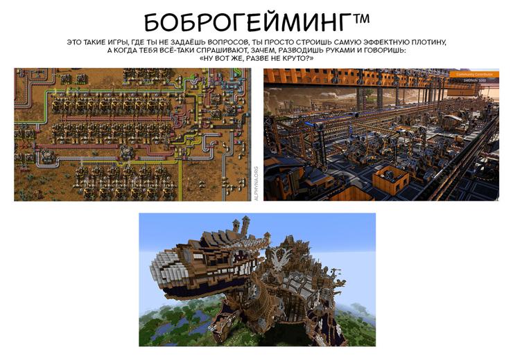 боброгейминг — это такой стиль игр, где ты не задаёшь вопрос, зачем, ты просто строишь плотину. чем круче плотина, тем бобрее. вопросы о цели и значимости плотины вызывают у боброгеймеров недоумение.
