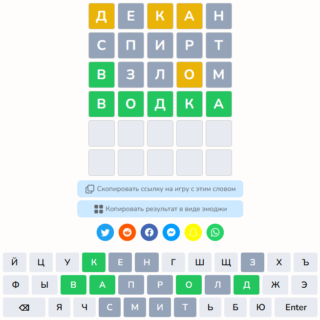 Если (вдруг?) кто-то не в курсе, — #вордли это игра, в которой надо за 6 попыток отгадать 5-буквенное слово; буквы, которые в вашем варианте стоят на правлиьных местах, помечаются зеленым, которые есть в слове, но в другой позиции — желтым, отсутствующие — серые.